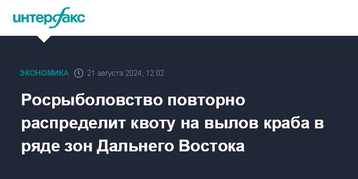 Москва. 21 августа. INTERFAX.RU - АО "Российский аукционный дом" (РАД) 6 сентября проведет повторный аукцион по распределению крабовых квот с инвестиционными обязательствами в ряде зон Дальнего Востока.