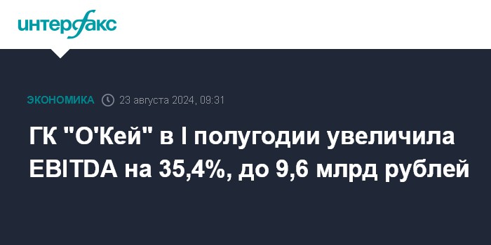 Москва. 23 августа. INTERFAX.RU - Группа компаний "О'Кей" в I полугодии 2024 года увеличила EBITDA по МСФО на 35,4% - до 9,6 млрд рублей, сообщила пресс-служба ритейлера.