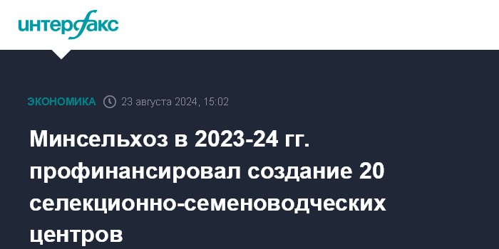 Минсельхоз в 2023-24 гг. профинансировал создание 20 селекционно-семеноводческих центров