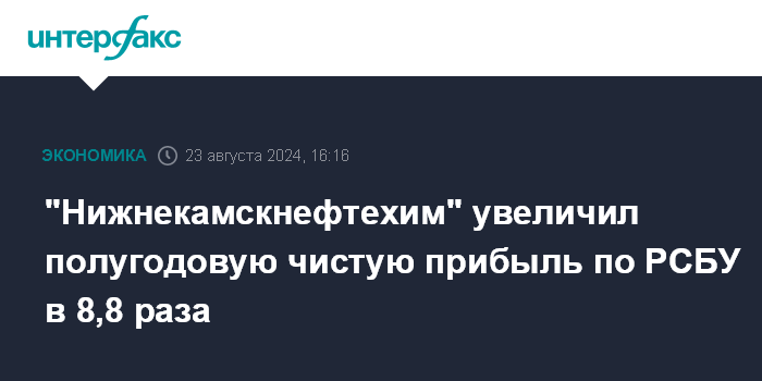 "Нижнекамскнефтехим" увеличил полугодовую чистую прибыль по РСБУ в 8,8 раза
