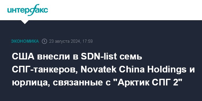 США внесли в SDN-list семь СПГ-танкеров, Novatek China Holdings и юрлица, связанные с "Арктик СПГ 2"