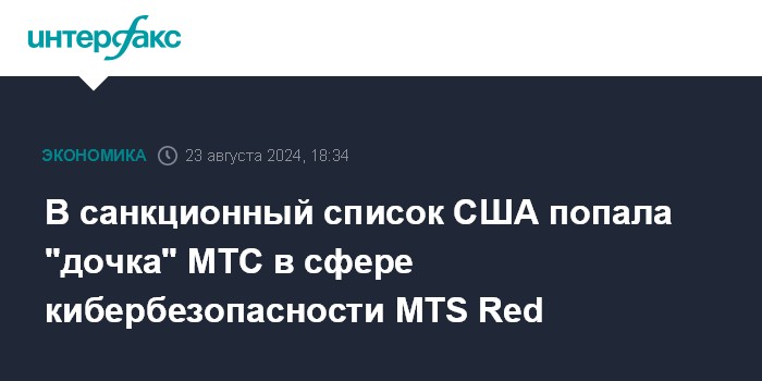 Москва. 23 августа. INTERFAX.RU - США включили в SDN-List ООО "Серенити Сайбер Секьюрити", которое является дочерней структурой ПАО "МТС" и предоставляет услуги в сфере кибербезопасности под брендом MTS Red, говорится в материалах американского Минфина.