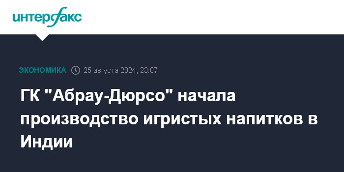 Москва. 25 августа. INTERFAX.RU - Группа компаний "Абрау-Дюрсо", ведущий производитель игристых вин в РФ, начала выпуск игристых напитков в Индии, объем первой тестовой партии составит 10 тыс. бутылок, сообщил "Интерфаксу" основной владелец и акционер группы компаний "Абрау-Дюрсо" Борис Титов.