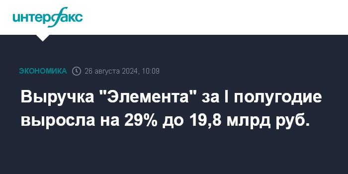 Выручка "Элемента" за I полугодие выросла на 29% до 19,8 млрд руб.