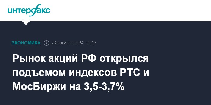 Рынок акций РФ открылся подъемом индексов РТС и МосБиржи на 3,5-3,7%