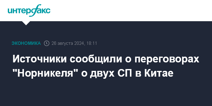 Источники сообщили о переговорах "Норникеля" о двух СП в Китае