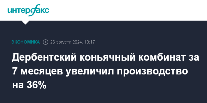 Дербентский коньячный комбинат за 7 месяцев увеличил производство на 36%