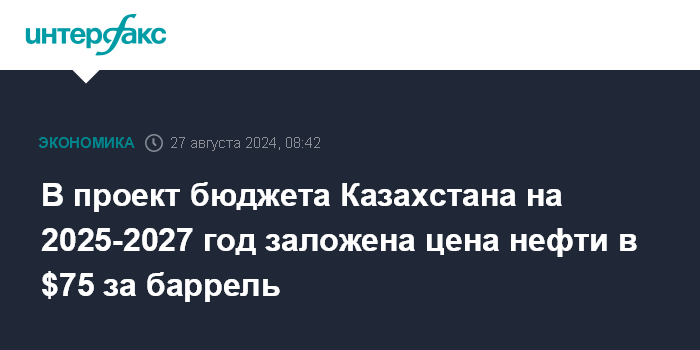 В проект бюджета Казахстана на 2025-2027 год заложена цена нефти в $75 за баррель