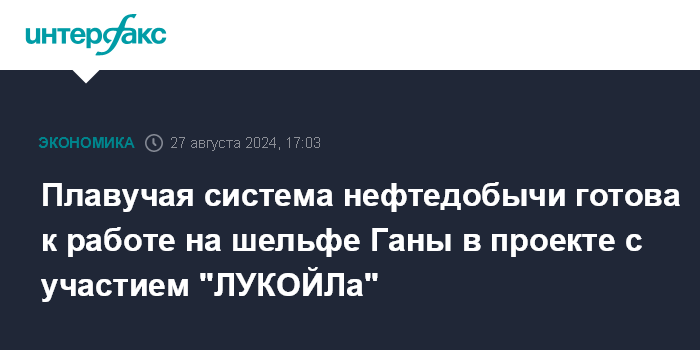 Плавучая система нефтедобычи готова к работе на шельфе Ганы в проекте с участием "ЛУКОЙЛа"