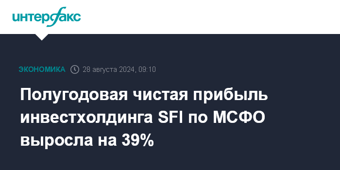Полугодовая чистая прибыль инвестхолдинга SFI по МСФО выросла на 39%