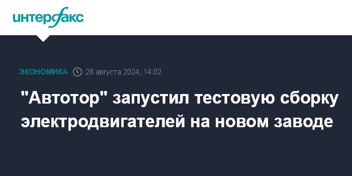 Москва. 28 августа. INTERFAX.RU - Калининградский "Автотор" приступил к выпуску тестовой партии электродвигателей на новом заводе, сообщила пресс-служба предприятия.
