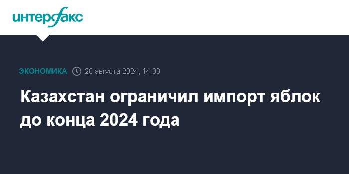 Москва. 28 августа. INTERFAX.RU - Правительство Казахстана ввело временный запрет на ввоз яблок автотранспортом из третьих стран, за исключением стран ЕАЭС, до конца 2024 года.