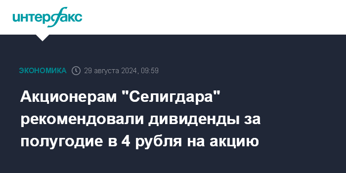 Акционерам "Селигдара" рекомендовали дивиденды за полугодие в 4 рубля на акцию