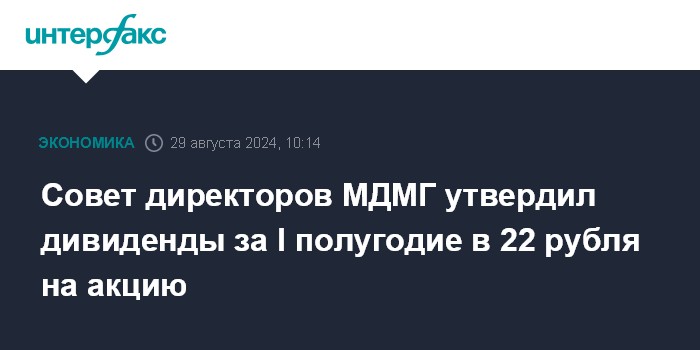 Совет директоров МДМГ утвердил дивиденды за I полугодие в 22 рубля на акцию