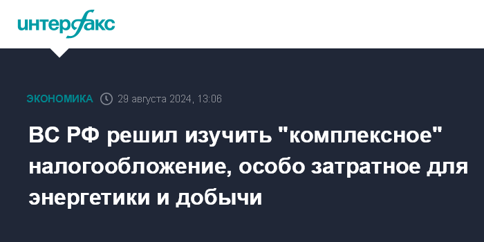 ВС РФ решил изучить "комплексное" налогообложение, особо затратное для энергетики и добычи