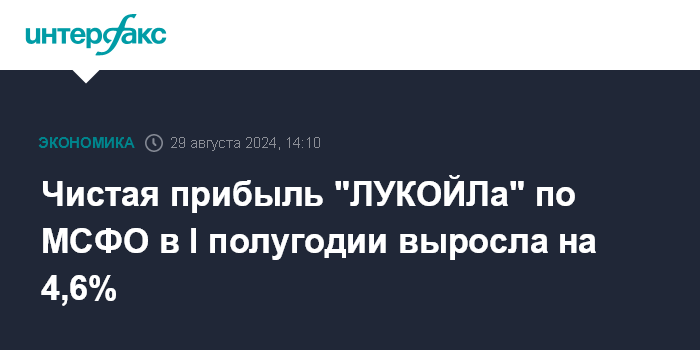 Чистая прибыль "ЛУКОЙЛа" по МСФО в I полугодии выросла на 4,6%