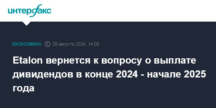 Etalon вернется к вопросу о выплате дивидендов в конце 2024 - начале 2025 года
