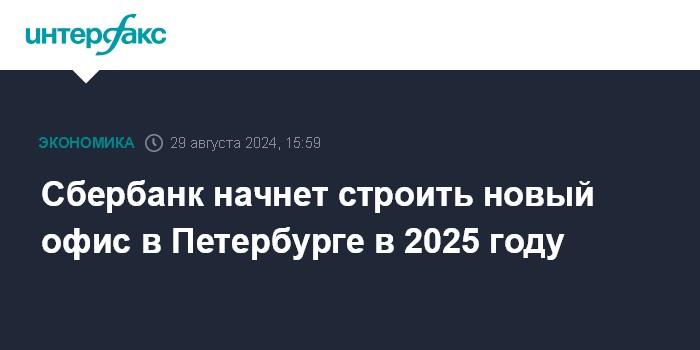 Москва. 29 августа. INTERFAX.RU - Сбербанк планирует начать строительство нового офиса в Петербурге в 2025 году, сообщил председатель правления кредитной организации Герман Греф на церемонии открытия IT-кампуса банка в Петербурге.