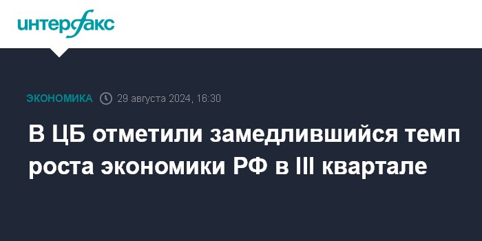 В ЦБ отметили замедлившийся темп роста экономики РФ в III квартале
