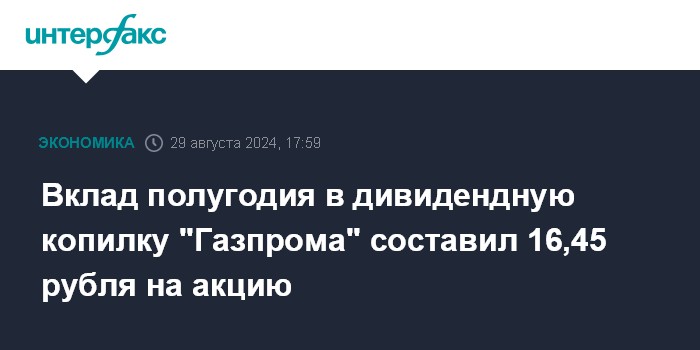 Вклад полугодия в дивидендную копилку "Газпрома" составил 16,45 рубля на акцию