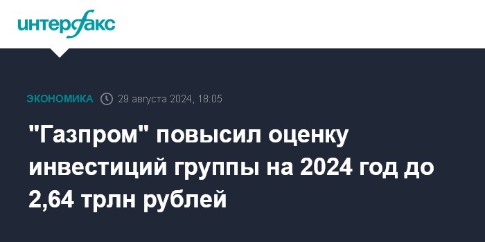"Газпром" повысил оценку инвестиций группы на 2024 год до 2,64 трлн рублей