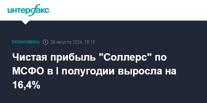 Чистая прибыль "Соллерс" по МСФО в I полугодии выросла на 16,4%