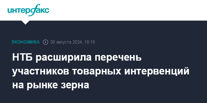 НТБ расширила перечень участников товарных интервенций на рынке зерна