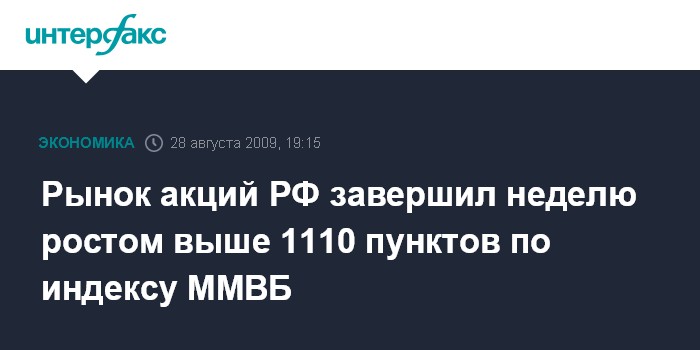 Москва. 28 августа. INTERFAX.RU - Российский рынок акций завершил неделю ростом выше 1110 пунктов по индексу ММВБ следом за мировыми фондовыми и сырьевыми площадками; в пятницу выстрелили бумаги "ФСК ЕЭС" на новостях о скором переводе сетевых компаний на новую систему тарифного регулирования RAB.