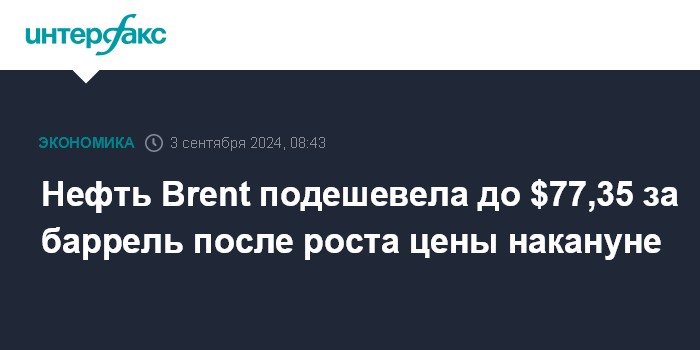 Нефть Brent подешевела до $77,35 за баррель после роста цены накануне