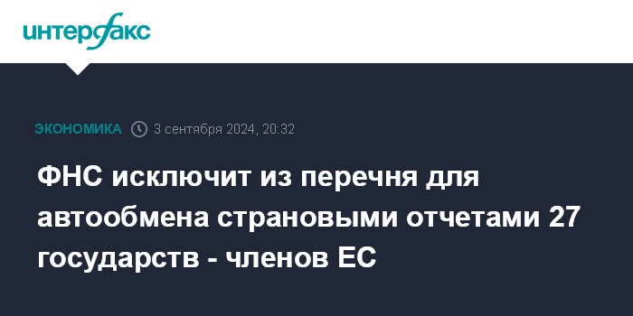 ФНС исключит из перечня для автообмена страновыми отчетами 27 государств - членов ЕС