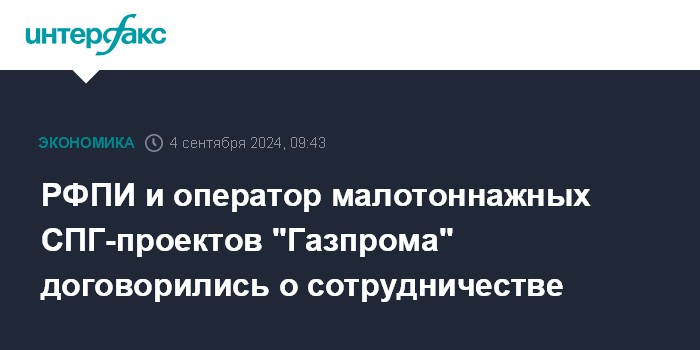 РФПИ и оператор малотоннажных СПГ-проектов "Газпрома" договорились о сотрудничестве