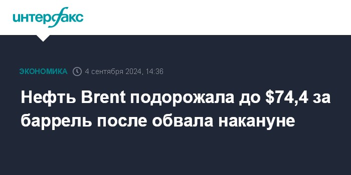 Нефть Brent подорожала до $74,4 за баррель после обвала накануне