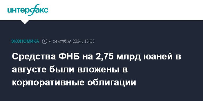 Средства ФНБ на 2,75 млрд юаней в августе были вложены в корпоративные облигации
