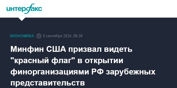Минфин США призвал видеть "красный флаг" в открытии финорганизациями РФ зарубежных представительств