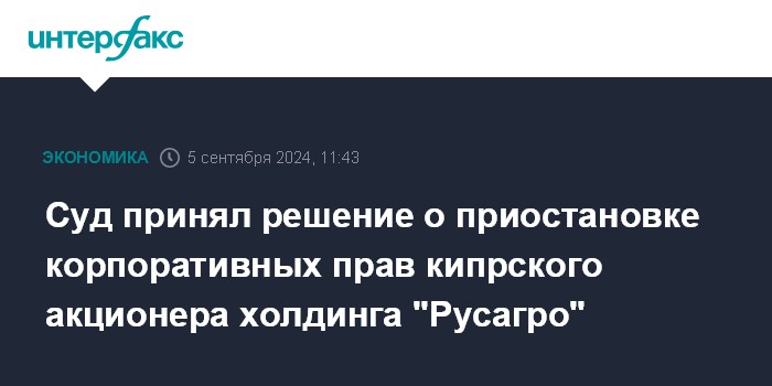 Суд принял решение о приостановке корпоративных прав кипрского акционера холдинга "Русагро"