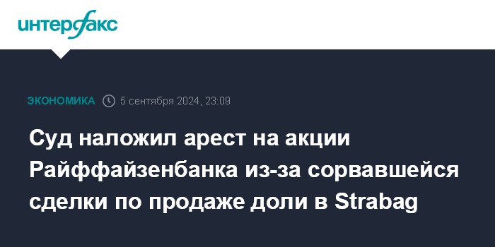 Суд наложил арест на акции Райффайзенбанка из-за сорвавшейся сделки по продаже доли в Strabag