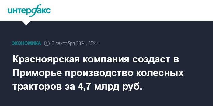 Красноярская компания создаст в Приморье производство колесных тракторов за 4,7 млрд руб.