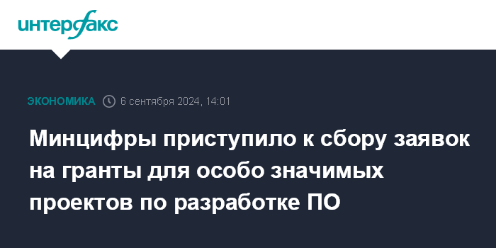 Минцифры приступило к сбору заявок на гранты для особо значимых проектов по разработке ПО