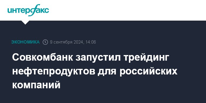 Совкомбанк запустил трейдинг нефтепродуктов для российских компаний