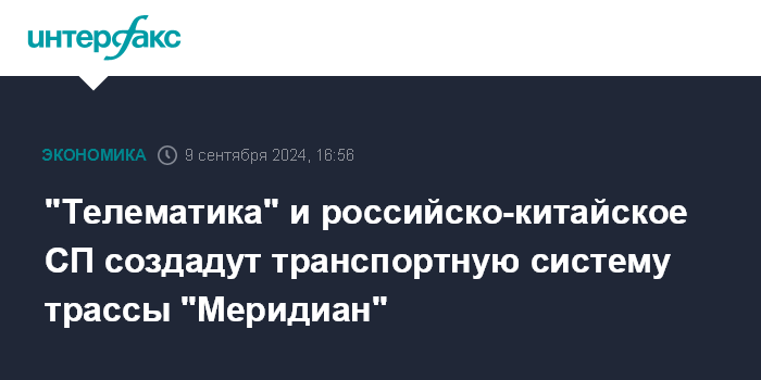"Телематика" и российско-китайское СП создадут транспортную систему трассы "Меридиан"