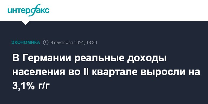 В Германии реальные доходы населения во II квартале выросли на 3,1% г/г