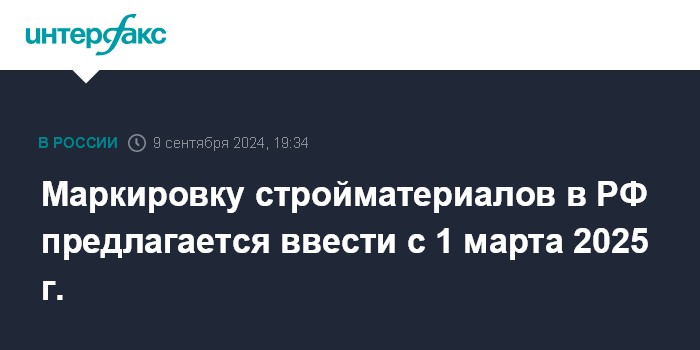 Маркировку стройматериалов в РФ предлагается ввести с 1 марта 2025 г.