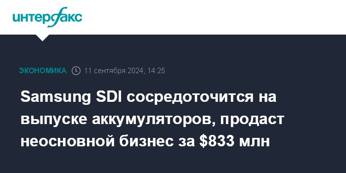Samsung SDI сосредоточится на выпуске аккумуляторов, продаст неосновной бизнес за $833 млн