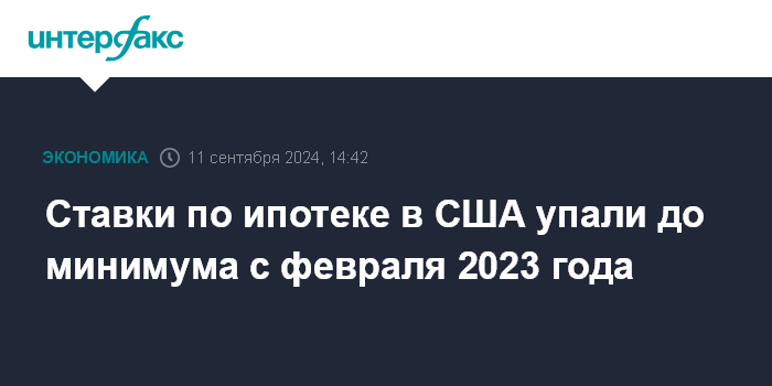 Ставки по ипотеке в США упали до минимума с февраля 2023 года