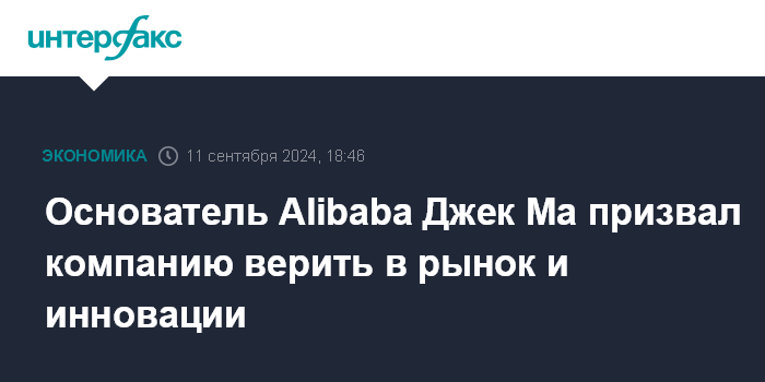 Основатель Alibaba Джек Ма призвал компанию верить в рынок и инновации