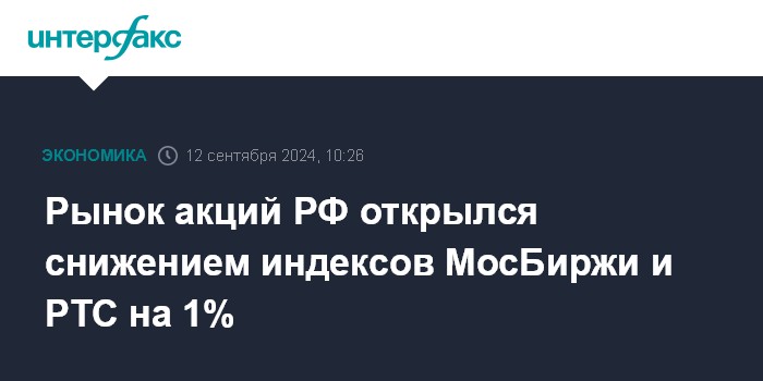 Рынок акций РФ открылся снижением индексов МосБиржи и РТС на 1%