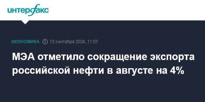 МЭА отметило сокращение экспорта российской нефти в августе на 4%