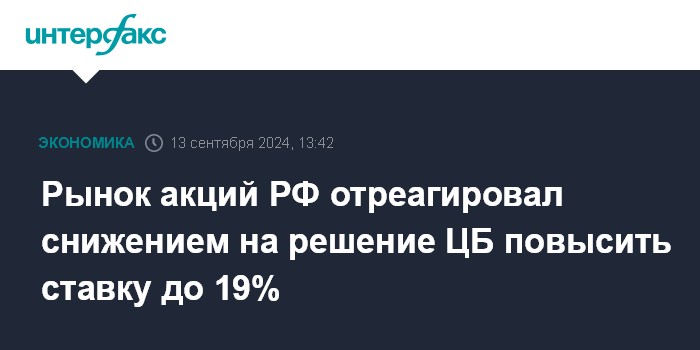 Рынок акций РФ отреагировал снижением на решение ЦБ повысить ставку до 19%