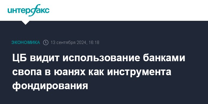 ЦБ видит использование банками свопа в юанях как инструмента фондирования