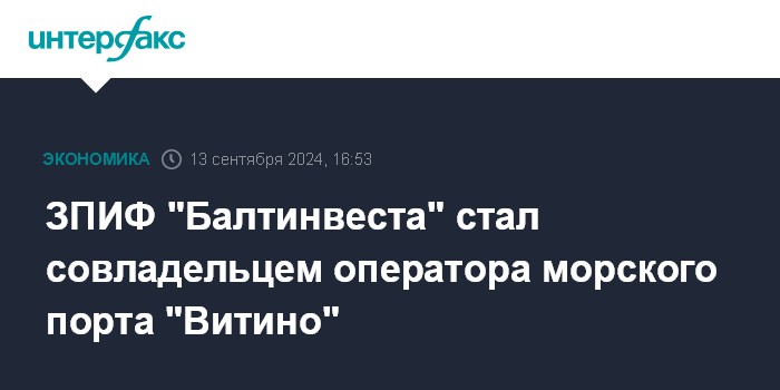 ЗПИФ "Балтинвеста" стал совладельцем оператора морского порта "Витино"